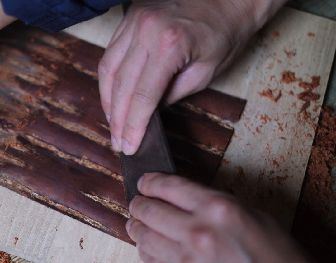 樹皮そのものの個性を、どんなふうに選び、活かしているのか。