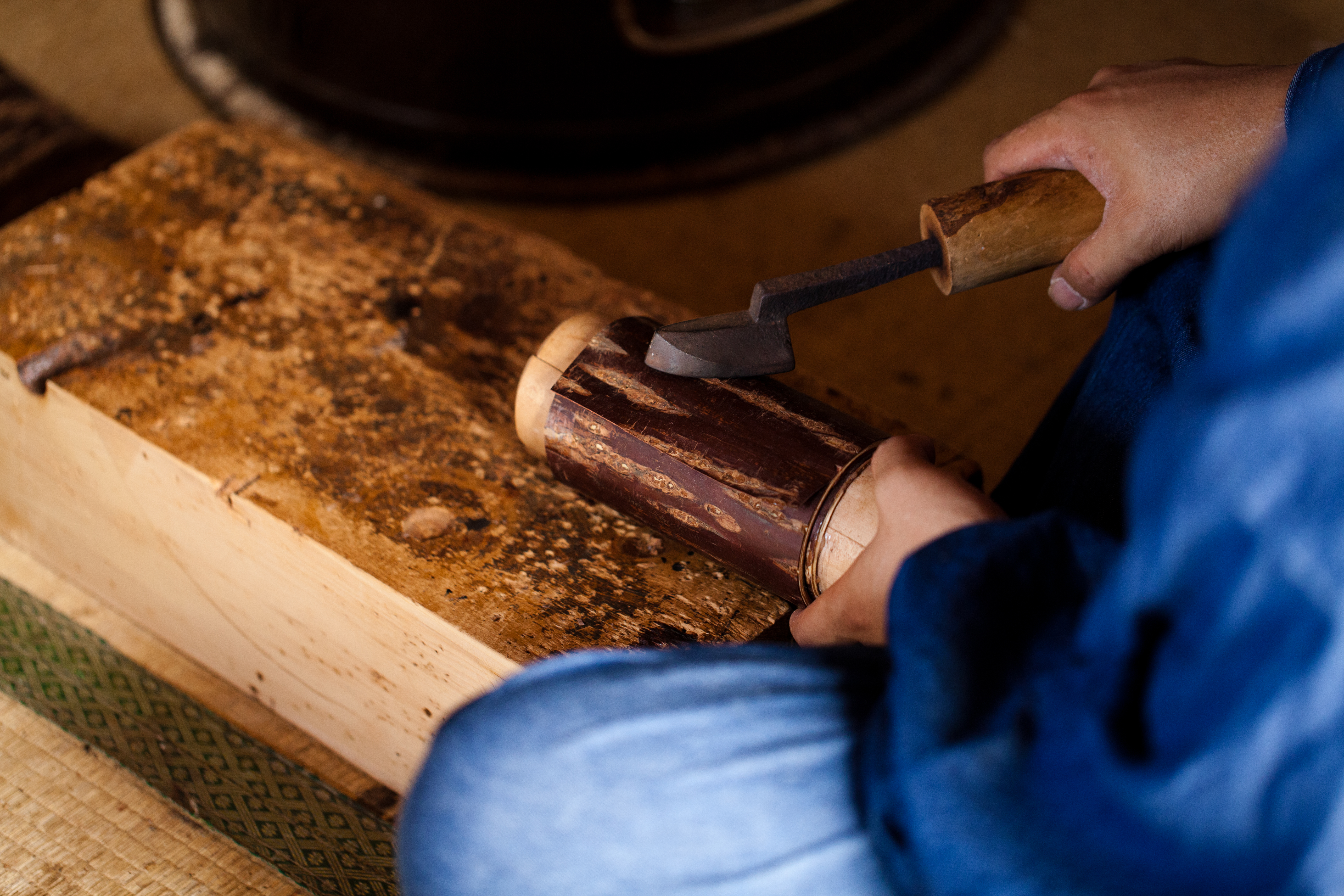 山桜の皮を使った「樺茶」もしくは秋田のお酒、1ドリンクが付きます。飲みものを片手に、双方向でざっくばらんに質問なども交えつつ樺細工について学び、秋田の山に思いを馳せましょう。